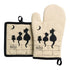 The famous illustrator DUBOUT comes into the kitchen with this essential duo to protect you from the heat. Do not hesitate to match it with matching dishcloths and aprons for an offbeat total look in the kitchen. The glove and potholder are machine washable. 18x28cm 100% Cotton Envelope, 100% Cotton Filler